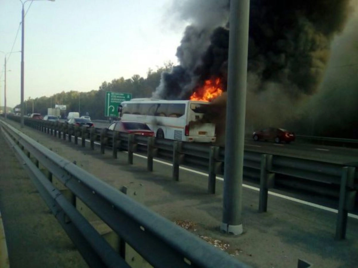 К настоящему времени автобус потушен, однако крайняя правая полоса движения в сторону Москвы перекрыта, отмечает РЕН ТВ.