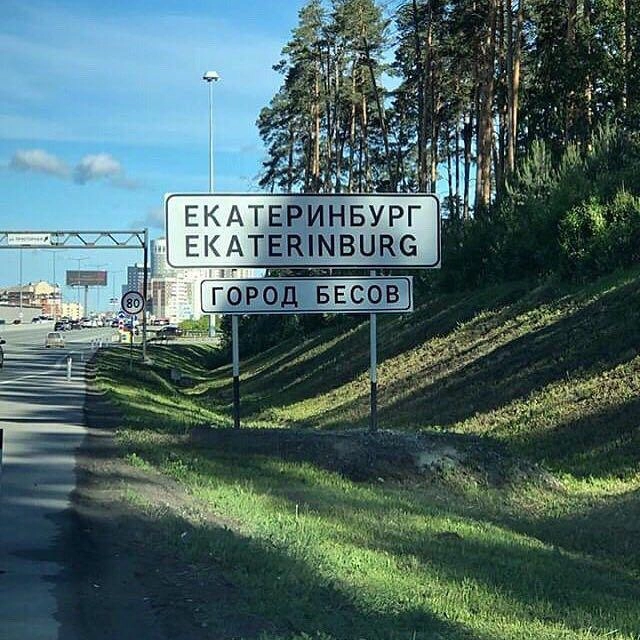 На въезде в Екатеринбург появилась табличка «Город бесов»