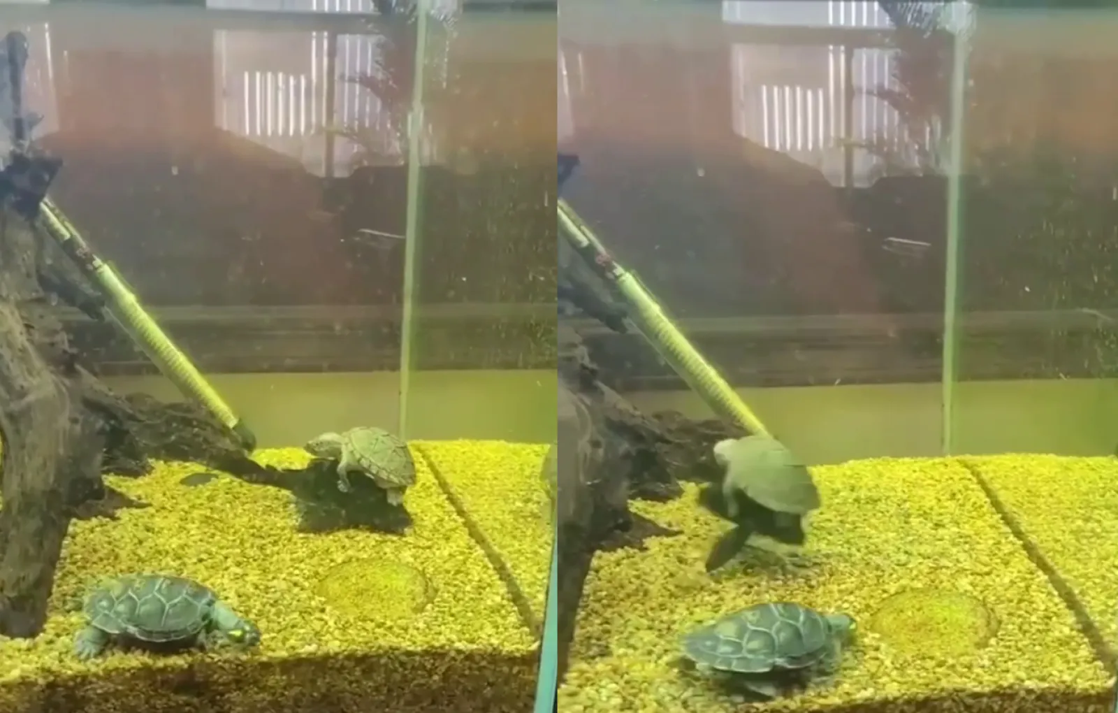 Рептилия устала ждать, пока кто-нибудь предложит ей покатушки, и организовала их себе сама, оседлав ничего не подозревающую рыбку. Остается лишь два вопроса: как и передаст ли черепаха за проезд?