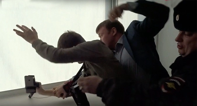 По словам пострадавшего, в результате он получил растяжение связок шейного отдела позвоночника и царапины на лице. Кроме того, был сломан его штатив. Об этом сообщает РЕН ТВ.