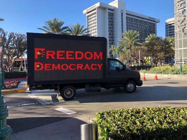 Протестующие в основном раздают майки и наклейки, но большинство людей просто ходят вокруг них, стараясь не ввязываться в неприятности. Район патрулирует полиция, но, как и работники конгресса, сотрудники правопорядка полностью игнорируют протестующих.