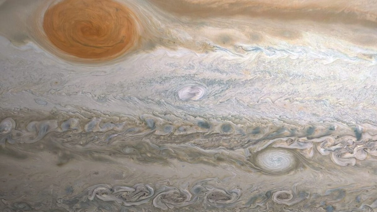 Новый шторм находится недалеко от Большого Красного Пятна. Напомним, что штормы на Юпитере — это постоянные зоны высокого давления, создающие антициклонический шторм на планете. Пятна меняются в размерах и изменяют свой цвет на протяжении времени наблюдения.