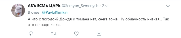 Подписчики Климкина принялись гадать, что могло помешать поездке — по их словам, в регионе не было тумана и сильных осадков. «Надо было шапку надеть и ехать», — констатировали «эксперты».