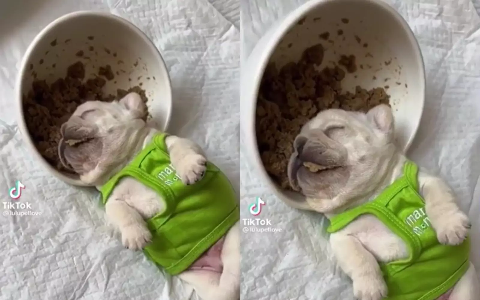 Сложно найти что-то более очаровательное, чем спящие щеночки, а если они спят в миске с едой, то становятся просто концентрацией милоты. Этот крохотный собакен, задремавший после обеда, тому подтверждение.