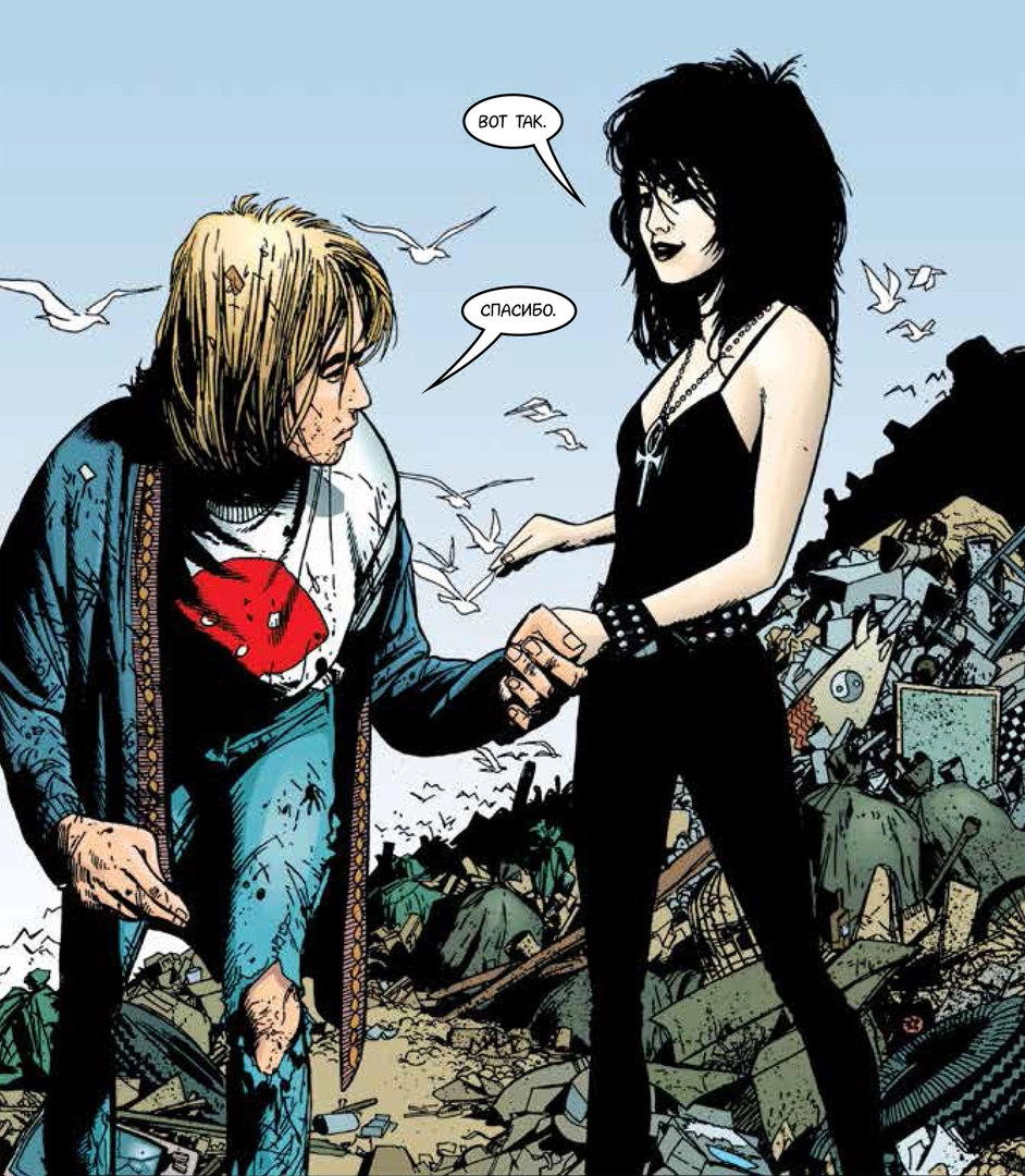 И вот «Смерть» - так называемый спин-офф «Песочного человека», вылившийся в полноценную серию рассказ о первоначально эпизодическом персонаже. Появившись в одном из комиксов набирающего популярность цикла в качестве старшей сестры повелителя снов, Смерть в обличье молоденькой симпатичной девушки сразу понравилась читателям. Тут Нил Гейман угадал общественный запрос: «Мне не хотелось иметь дело со Смертью, которая бы ужасалась своей роли, или получала мрачное удовольствие от своей работы, или которой было бы на всё наплевать. Мне хотелось написать о такой Смерти, какую я сам не отказался бы встретить в конце. По-своему заботливую. Как эта».