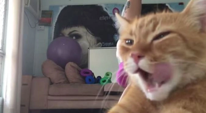 Девушка решила записать свое занятие на видео и установила на полу камеру. В то время, как девушка выполняла упражнения стоя на голове, ее рыжий кот посчитал, что он более фотогеничен. Он нагло разлегся возле камеры и заслоним своей головой половину экрана и просидел перед камерой до конца ролика.