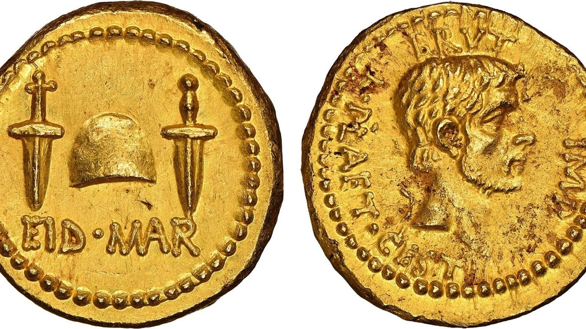 В одной из частных коллекций специалисты нашли золотую монету, посвященную убийству Юлия Цезаря.