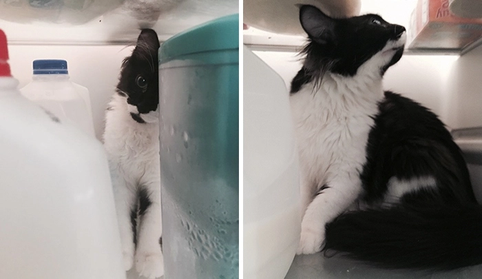 А вашим кошкам нравится запрыгивать в холодильник?