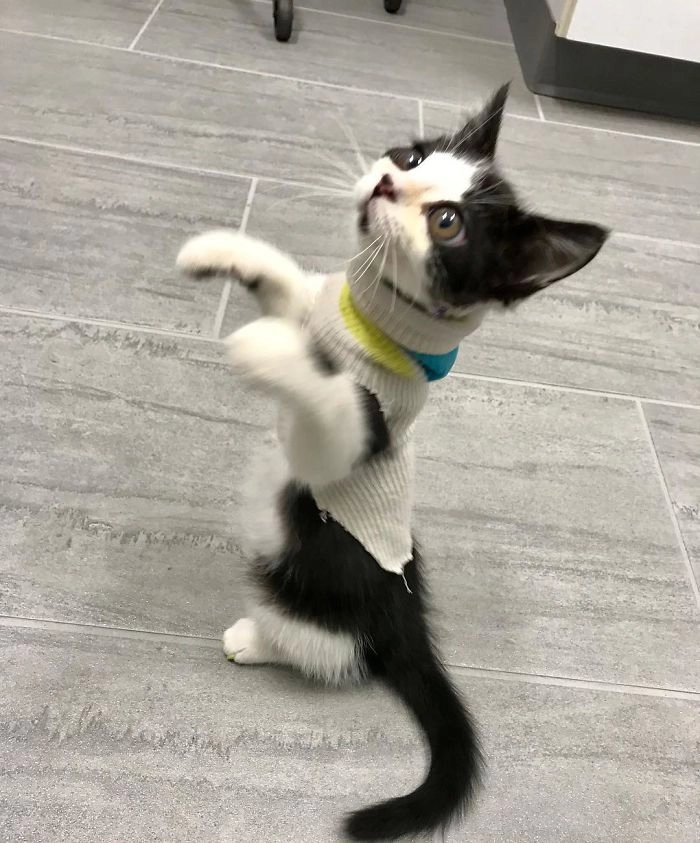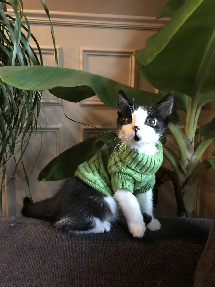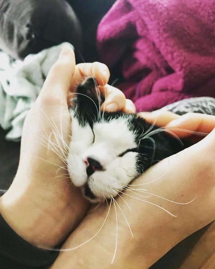 «Мне кажется, я полюбила этого котика с первого взгляда. Это был 1 фунт глазных яблок и нахальства. Я забрала его к себе на время, но как только он переступил порог нашего дома, то сразу стал членом семьи», — рассказала ветеринар Элхер Данлос (Elhers Danlos).