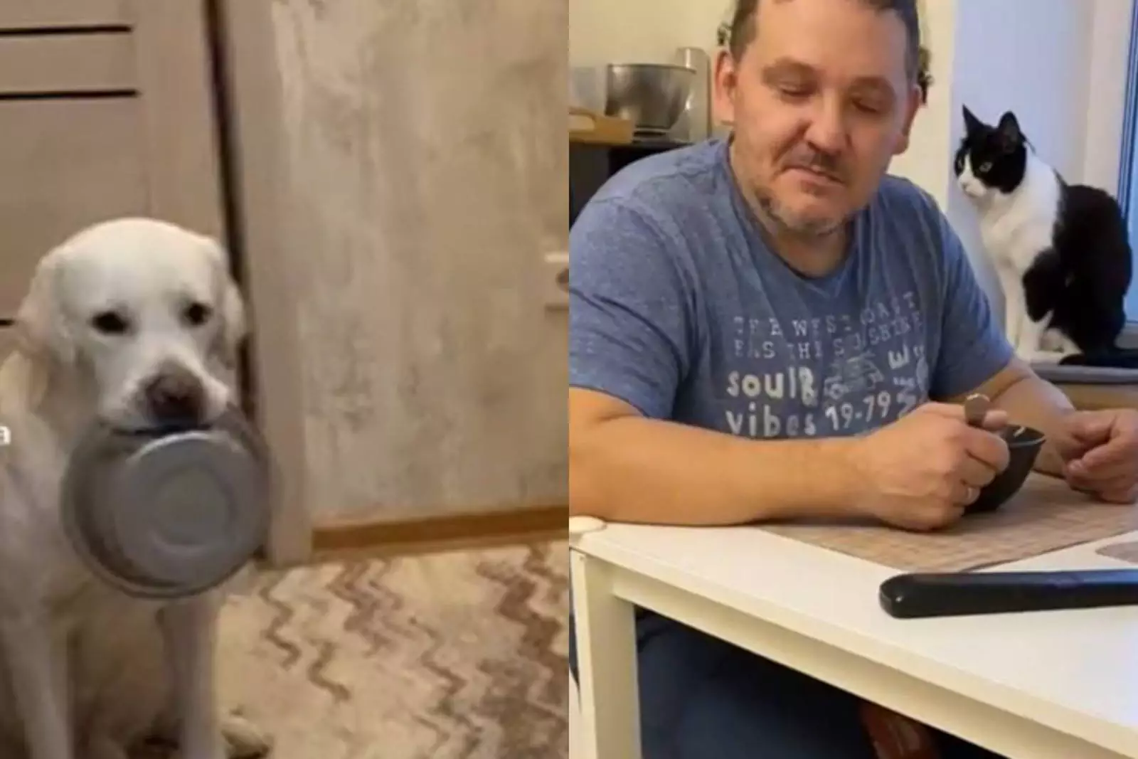Хозяйка лабрадора по кличке Маффи поделилась с поклонникам забавным видео с участием питомца. На кадрах голодный пёс стоит перед завтракающим хозяином с миской в зубах. Собакен довольно красноречиво сообщает о своих желаниях, а мужчина делает вид, что совершенно не понимает, чего от него хотят.