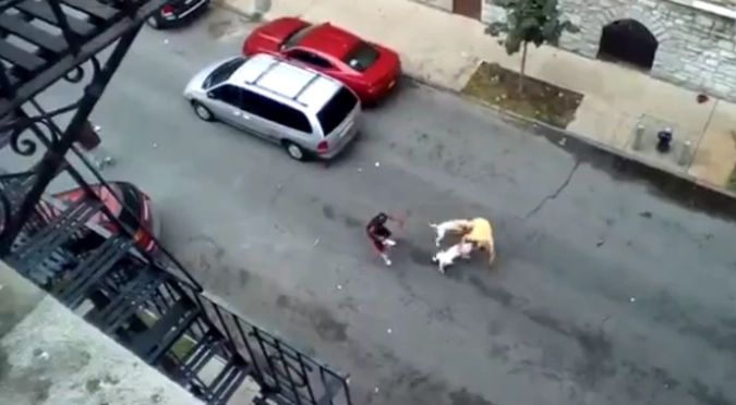 Пользователь из США опубликовал на портале Liveleak видеозапись с нападением агрессивных питбулей на людей.
