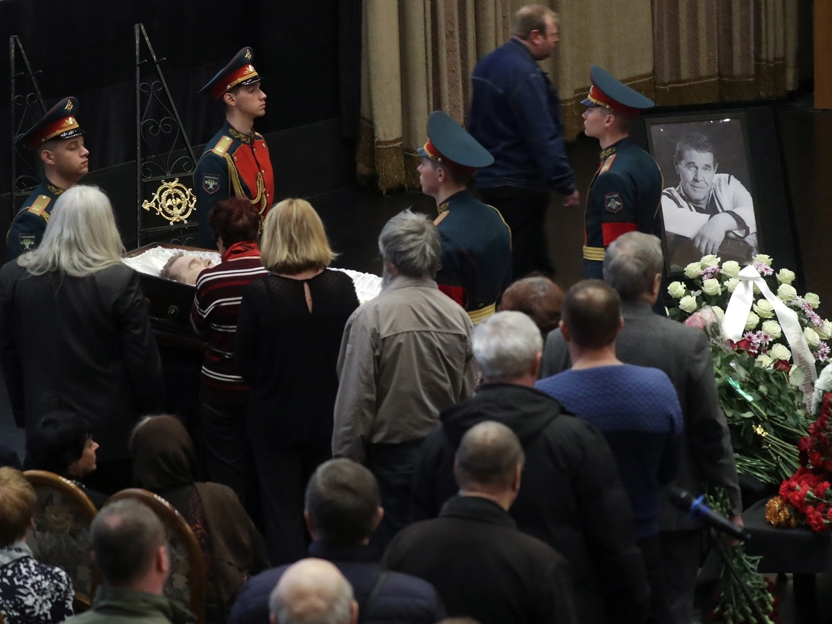 В московском Доме кино прошла церемония прощания с актером Алексеем Булдаковым, известным по роли генерала Иволгина в фильмах «Особенности национальной охоты» и «Особенности национальной рыбалки».