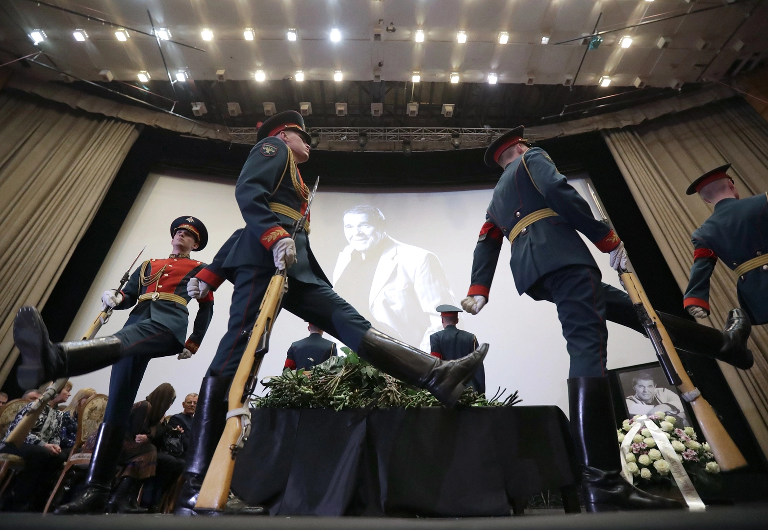 У гроба артиста в почетном карауле стояли курсанты военных училищ.