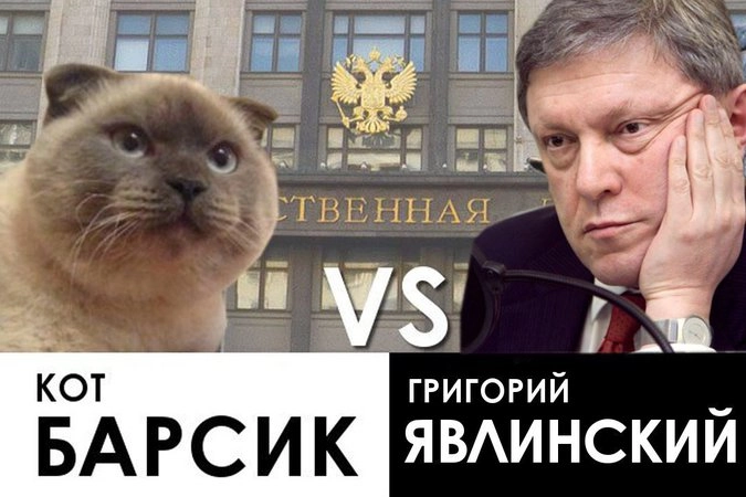Отказ Явлинского «учитывать мнение жителей Крыма» в вопросе референдума о воссоединении полуострова с Россией также заботит Барсика: «Как только „Партию кота Барсика“ зарегистрируют, мы обязательно отправим на дебаты с лидером этой партии нашего спецпредставителя собаку Жучку».