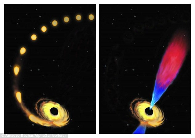 Такое наблюдение подтвердило ранее выдвинутые гипотезы специалистов о том, что во время «приема пищи» черная дыра выбрасывает в космос массу энергии — быстро движущийся поток плазмы, также называемый горизонтом событий.