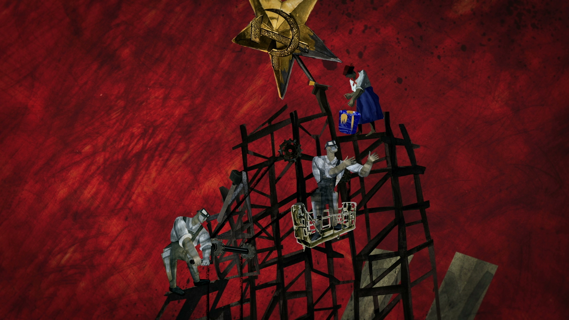Заметно выделяются среди этих работ «Золотые яйца» (реж. А. Шепилова) – пересказ на революционный лад сказки про курочку Рябу. Уйдя от своей горестно вздыхающей хозяйки, курица, несущая яйца, которые невозможно разбить, встречает сперва покойника-офицера, восстающего из могилы и покидающего кладбище на синем коне. Оказавшись в городе, героиня попадает под очарование конструктивизма и всего, ему сопутствующего: тут тебе и дирижабль, тут тебе и башня Татлина, передовица про Ленина, пионеры да большая звезда с серпом и молотом. По картинке очень напоминает не столько ту эпоху, сколько недавнее открытие сочинской Олимпиады: видимо, художники одинаково ощущают всё возрастающую актуальность классического материала. В финале Ряба со своими вылупившимися-таки птенцами летит к светлому будущему. Для категории 6+ это, конечно, довольно сильное авторское высказывание.