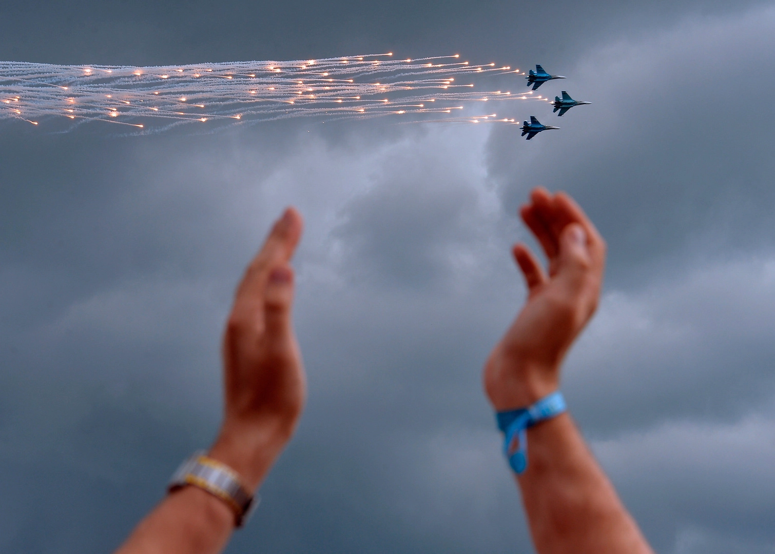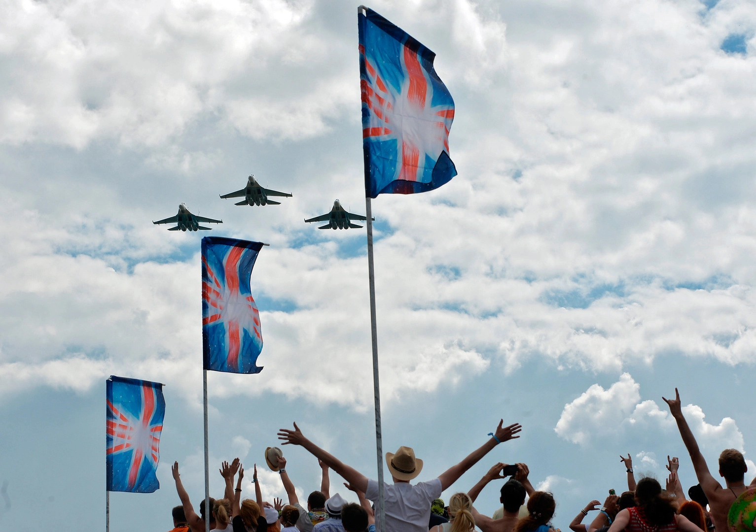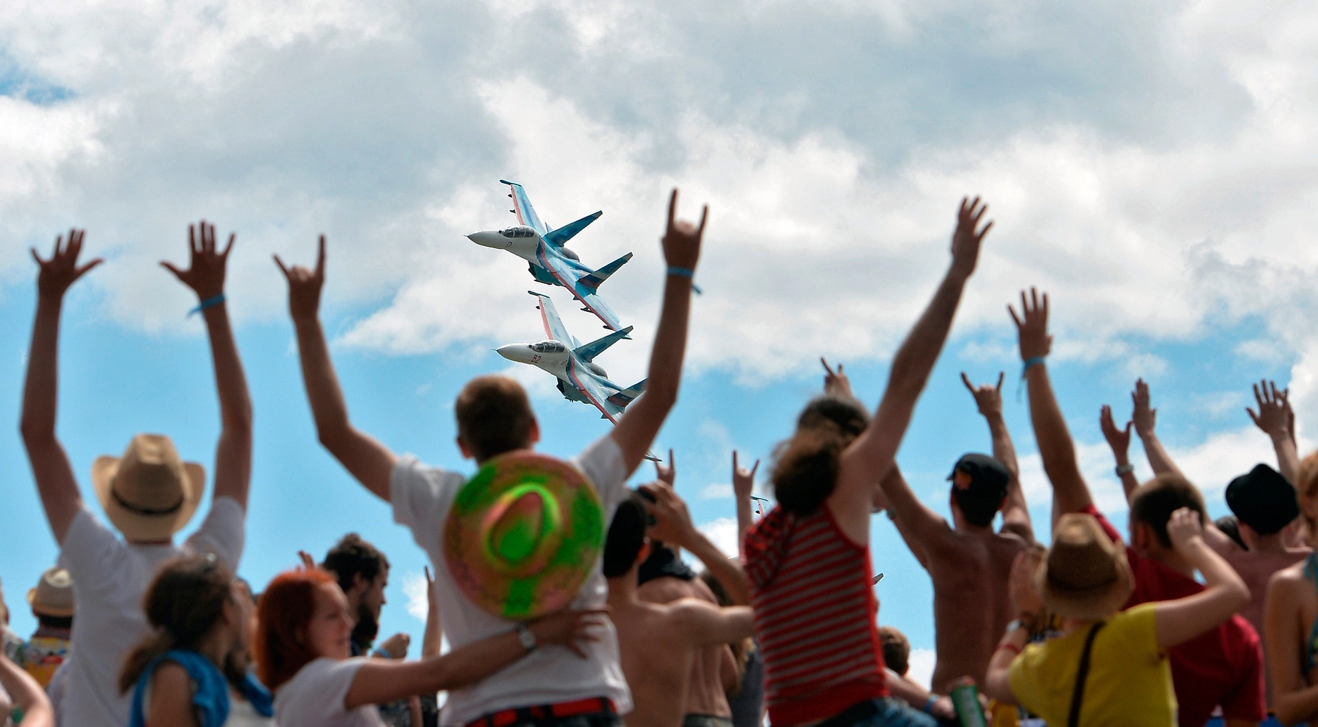 Самолеты Липецкой пилотажной группы "Соколы России" на фестивале "Нашествие 2014"