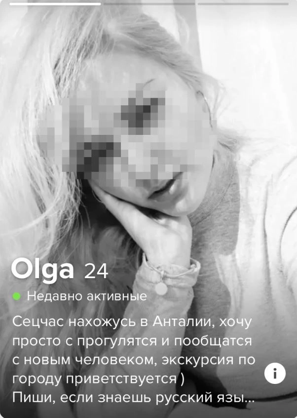 На дворе век новых технологий, и знакомства нынче технологичные. Современные люди для таких целей используют известное приложение Тиндер, на улицах знакомиться уже не модно. Я тоже им иногда пользуюсь и открыл его в турецкой Анталии. Какое же было удивление, когда почти все ближайшие девушки оказались нашими.