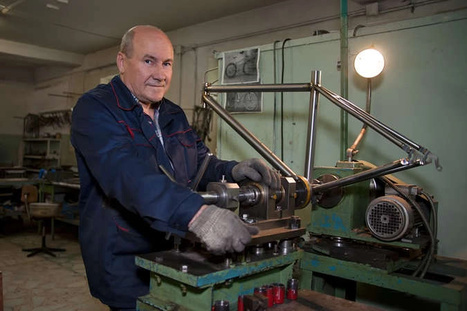 Встречает нас генеральный директор, конструктор Михаил Николаевич. Производство небольшое, в фирме работает всего человек двадцать. Обсуждаем заказ, попутно расспрашиваем — нам интересна история производства: — Вся наша компания вышла из авиации, нам на советском производстве в основном титаном приходилось заниматься — это же авиакосмический материал. Когда оборонка стала потихоньку умирать, хотелось накопленный опыт применить куда-то, где он востребован. Занимались поиском направлений и тут совершенно случайно выплыл заказ на титановую велораму от шведов. Титан тогда только входил в моду в велосипедах, это была золотая эра велотитана. И мы сделали образцы по своему разумению, как мы это понимали, конечно, очень далекие от идеала — они были прочно сварены, но о горных велосипедах мы тогда вообще не имели представления. Это были 94-95-е годы, только первые MTB в Москве в продаже стали появляться.