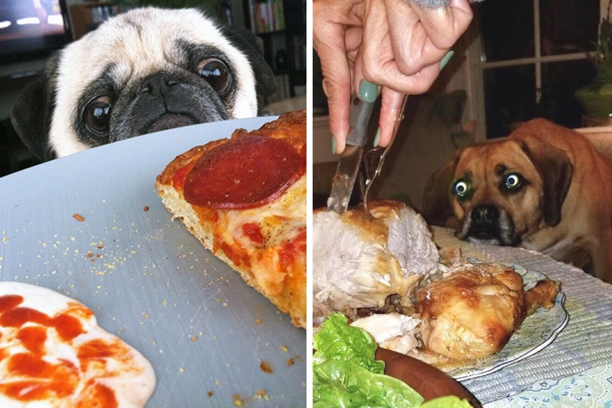 Любой владелец собак знает: стоит ему приготовить себе обед, как рядом возникает преданный питомец, который пускает слюни и смотрит на еду огромными глазами кота из «Шрека». И только человек с железобетонной выдержкой сможет устоять перед чарами собак из нашего материала.