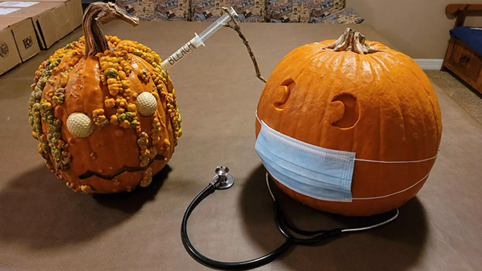 18. Эти тыквы, демонстрирующие расширение, размещены в Королевской больнице Олдхэм, Ланкашир, Англия, в рамках конкурса по украшению тыквы.