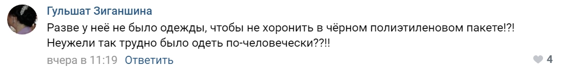 Как сообщалось ранее, бабушка проживала в пансионате для ветеранов войны и труда на Минской улице. Ее обеспокоенный знакомый сообщил в соцсетях, что после смерти ее было некому похоронить, поэтому ее просто положили в гроб в черном санитарном пакете, не помыв и не переодев. Произошедшее вызвало резонанс в Сети.