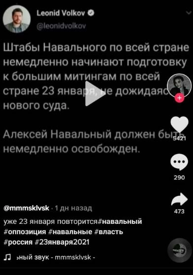 Параллельно TikTok призывает распространять «новое видео Алексея Навального» про «дворец Путина» и «историю большой взятки».