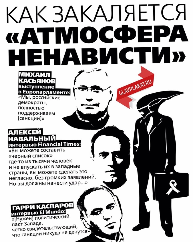 На баннере изображены карикатурные портреты оппозиционеров Михаила Касьянова, Алексея Навального и Гарри Каспарова. Ниже приведены цитаты этих людей, напичканные ненавистью в адрес российской государственности и общества.