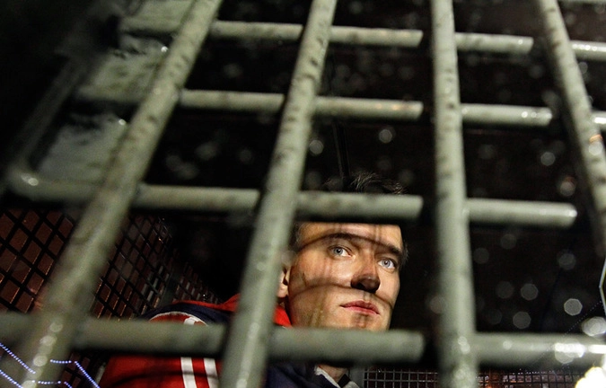 Алексей Навальный в автозаке после задержания. © Сергей Пономарев/AP Photo