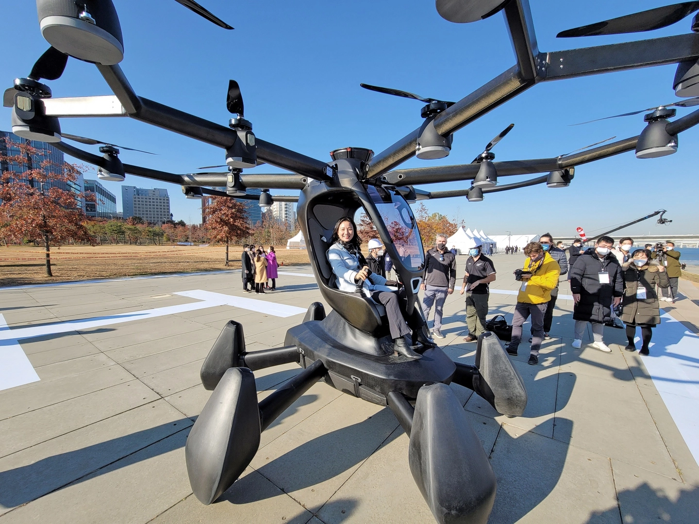 В Сеуле прошли первые испытания летающих такси. Они оснащены системой беспилотного управления и способны перевозить до двух пассажиров. В будущем их число может быть увеличено до восьми.