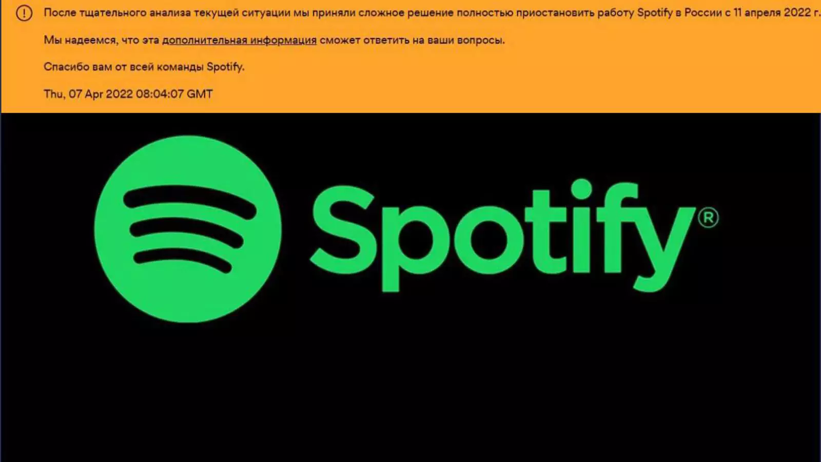 «После тщательного анализа текущей ситуации мы приняли сложное решение полностью приостановить работу Spotify в России с 11 апреля 2022 года. Спасибо вам от всей команды Spotify».