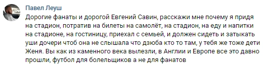 Но выступление видеоблогера в защиту буйных фанатов оценили далеко не все комментаторы. Одни оказались недовольны «уходом в политику» Савина, другие считают фанов с их громкими и не всегда приличными выкриками угрозой и для обычных болельщиков тоже.