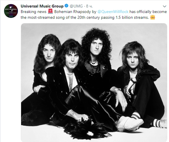 Песня Bohemian Rhapsody («Богемская рапсодия») легендарной британской рок-группы Queen названа самой прослушиваемой композицией XX века.