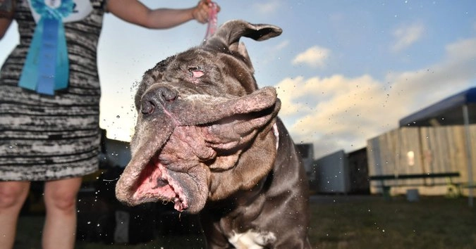 На завершившемся в Калифорнии 29-м Всемирном конкурсе самых уродливых собак первое место заняла 57-килограммовая Марта породы неаполитанский мастиф.