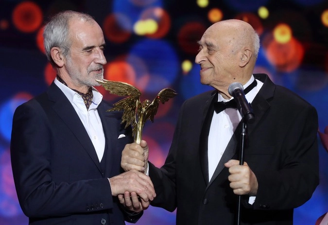 Почетный приз кинопремии, награду «Честь и достоинство», которая носит имя Эльдара Рязанова, получил народный артист СССР Владимир Этуш. Зал встретил старейшего актера стоя, криками «браво». «Театр горд сегодня, вы великий из великих, я вас обнимаю и люблю», — сказал художественный руководитель Театра им. Вахтангова Римас Туминас, вручая награду актеру.