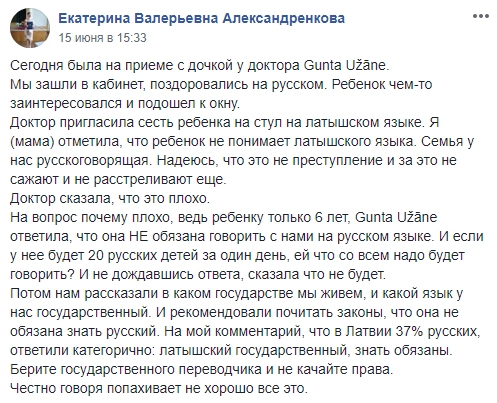 Когда врач начала говорить с ребенком на латышском языке, мама пояснила, что дочь не понимает.