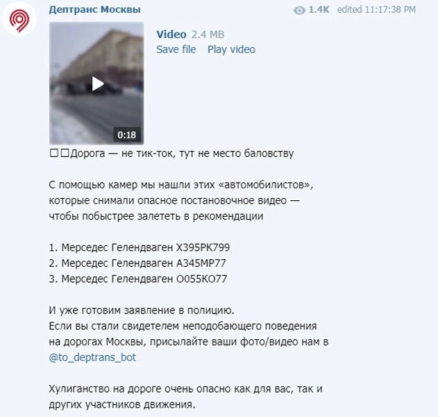 Не место баловству: Дептранс Москвы вычислил тиктокеров на «Гелендвагенах»