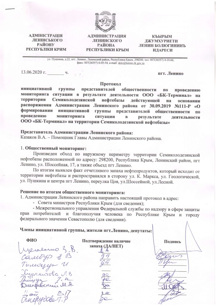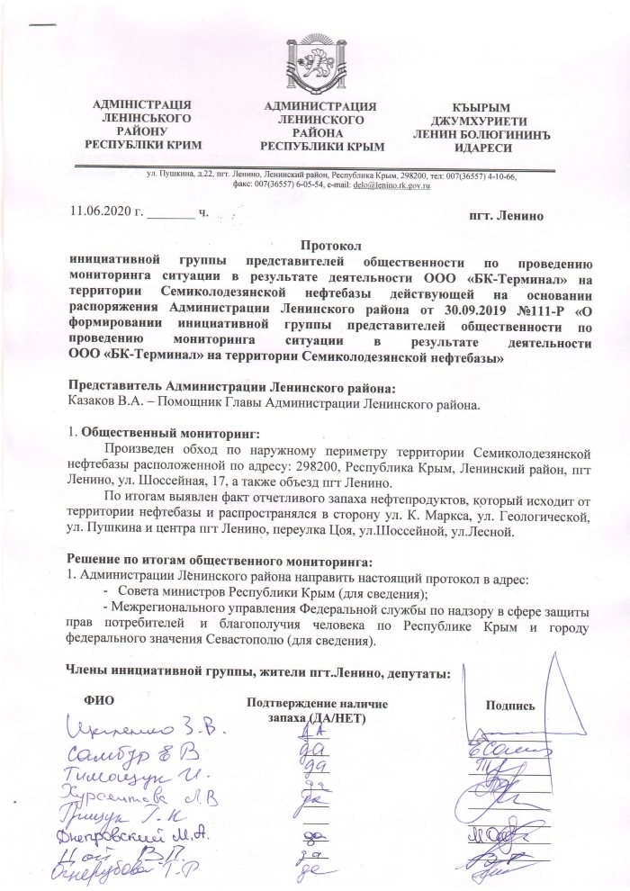 «Мы все хотим, чтобы это вредное производство вынесли за пределы посёлка, как сказал ранее Сергей Аксёнов. Когда нефтебаза работает, в посёлке нечем дышать. От паров нефтепродуктов мы все задыхаемся. Мы хотим жить в чистом посёлке и дышать чистым воздухом. Пожалуйста, помогите Сергею Аксёнову довести до успешного завершения начатую работу по выносу этого предприятия за пределы посёлка», — говорят крымчане, обращаясь к Владимиру Путину за помощью.