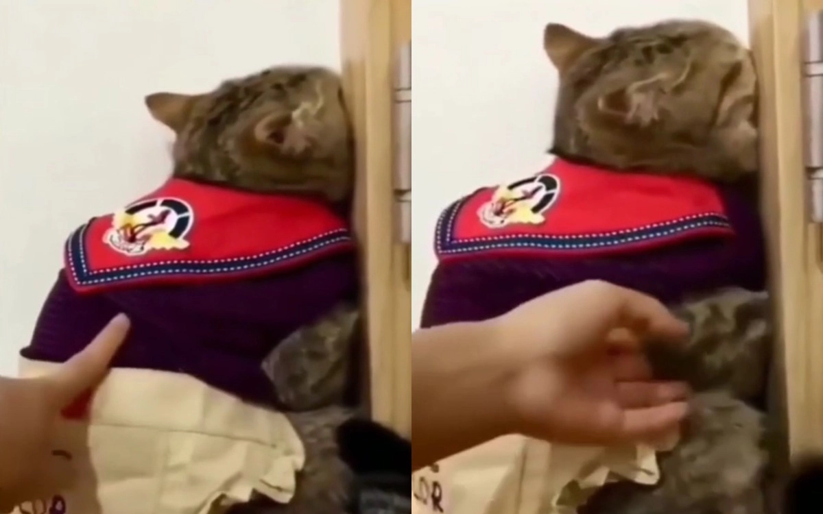 Пользователи соцсетей пытались угадать причину такой реакции котейки на действия хозяина.