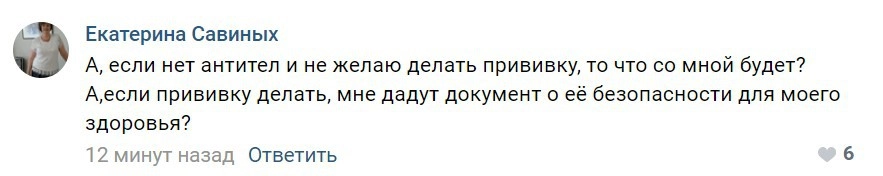 Пользователи Сети с негодованием и недоверием восприняли эту новость. Часть комментаторов высказала озабоченность по поводу дальнейшей судьбы тех, кто откажется делать вакцину от коронавирусной инфекции.