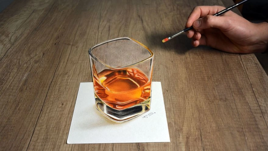 Для создания 3D-картин немец использует карандаши, масляные краски и ручки, а холстом выступает обычный лист бумаги или картона.