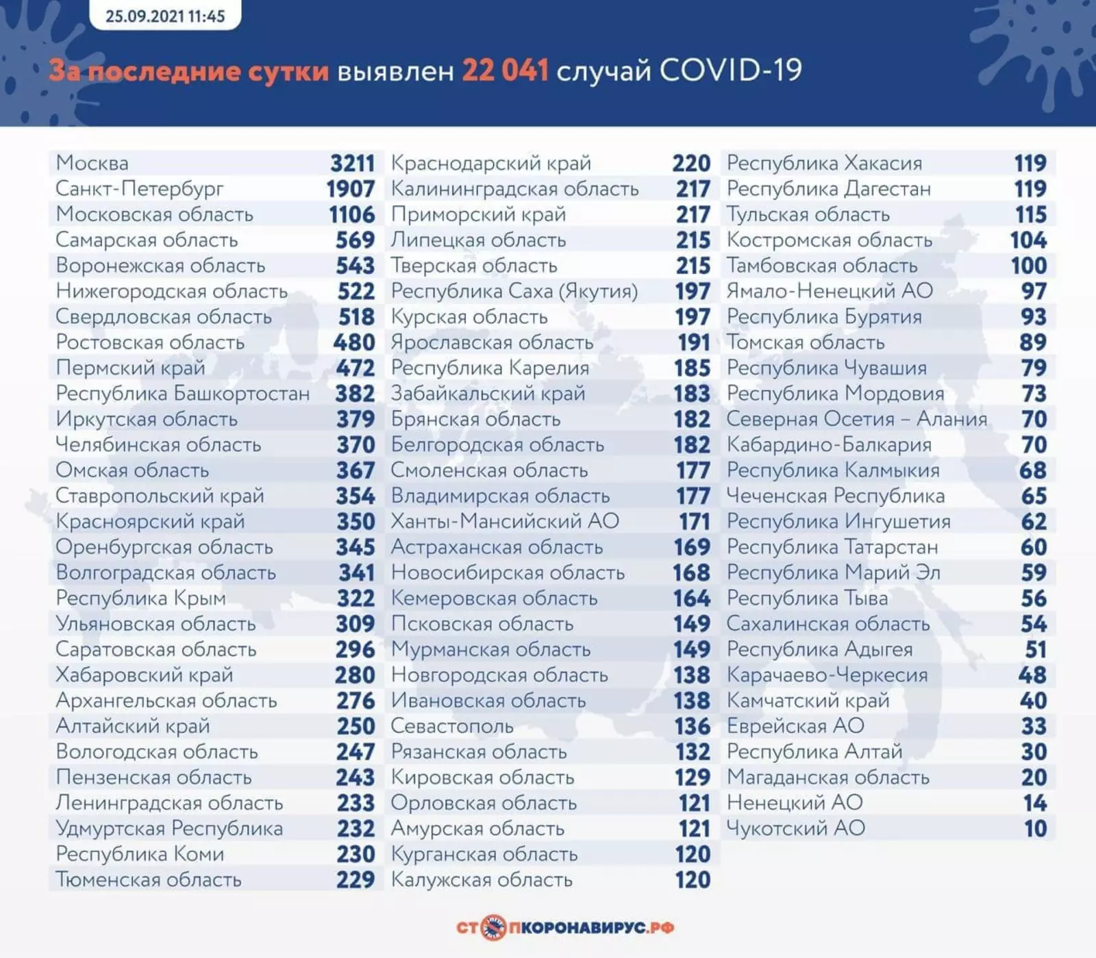 В России второй день подряд выявляют более 22 тысяч случаев заражения COVID-19. По данным оперштаба на утро воскресенья, за последние сутки заболели 22 498 человек, умерли 805 (накануне — 22 041 и 822 соответственно).
