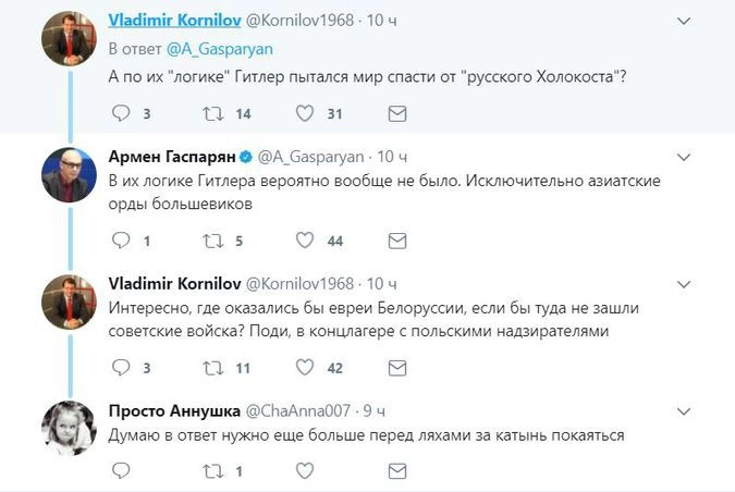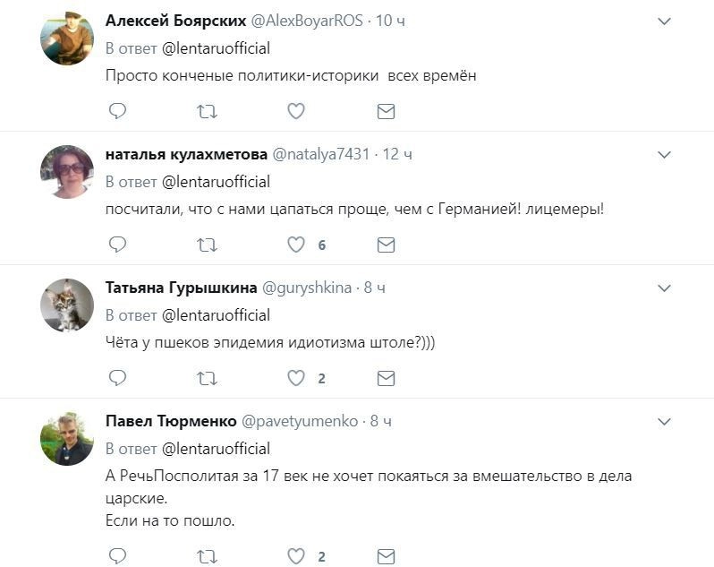 Слова Антония Мацеревича вызвали негодование в российском сегменте Сети. «Он псих и сволочь», — написал в своем блоге журналист, политолог и телеведущий Виталий Третьяков.