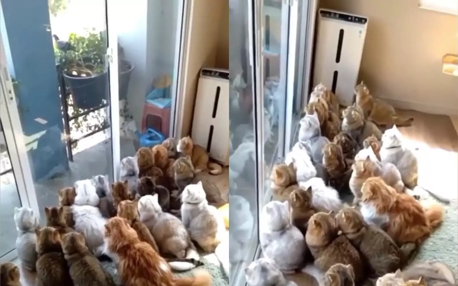 Недоступный обед: толпа котиков увидела за окном голубя и «сломалась»