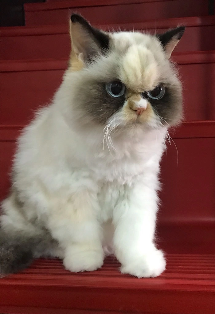 Сердитая кошка Grumpy cat в свое время стала настоящей интернет-сенсацией. Конечно, ее никто и никогда не сможет заменить (в прошлом году она умерла), однако героиня этого материала точно заслуживает быть в топ-5 самых недовольных и угрюмых котов.