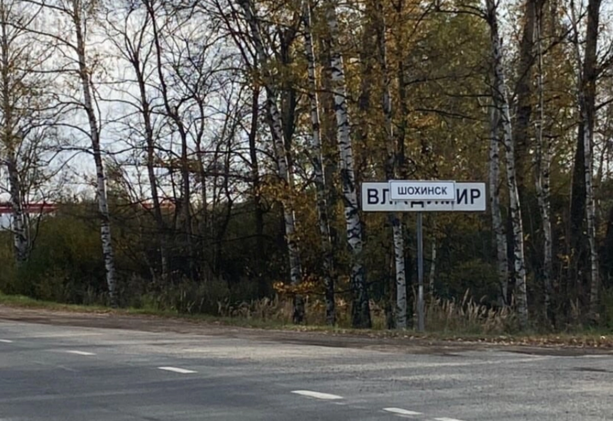 Город Владимир обзавелся новым названием. Пользователи соцсетей распространяют фотографии обновленного дорожного знака на въезде в город со стороны столицы: судя по указателю, областной центр отныне носит неофициальное название «Шохинск».
