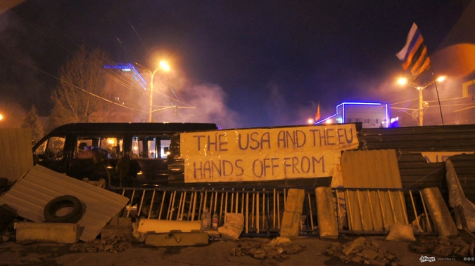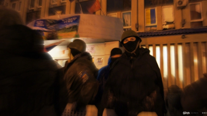 Отмечу, что от входной двери меня отделяла не только мини-баррикада, но и три юноши в масках и обмундировании «аля-Правый сектор». Вот только на щитах что-то вроде: «Stop EU, NATO» и «Fuck Obama».