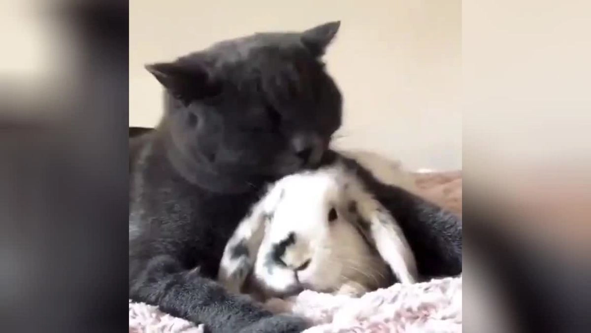 Необычная дружба кота и кролика покорила сердца пользователей Сети
