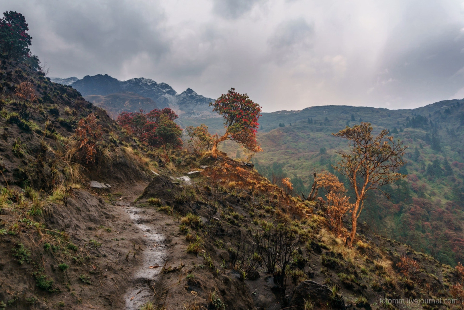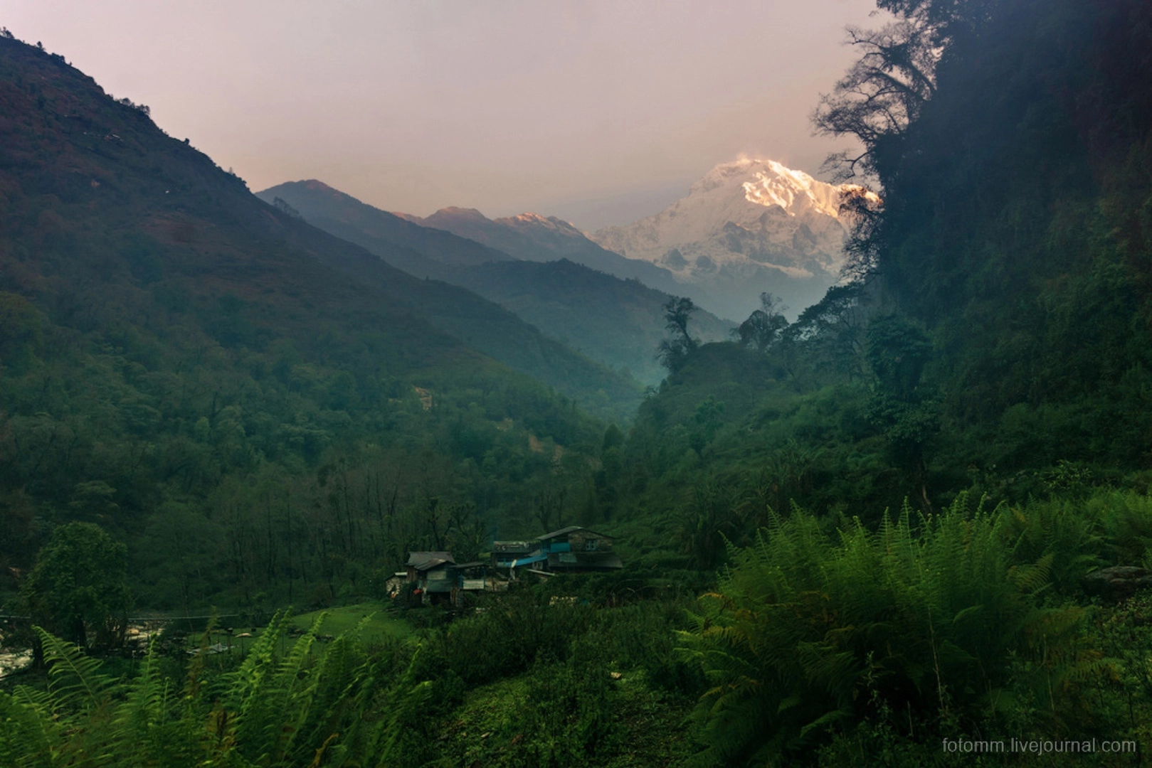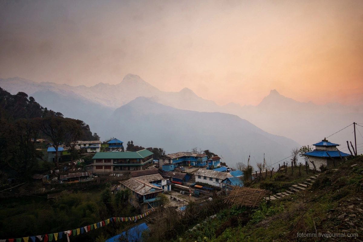 Хотя были и досадные моменты. Вот здесь, в деревне Тадапани, я так и не смог дождаться, когда же уйдет плотная воздушная дымка и можно будет заснять Аннапурну и Мачапучаре.
