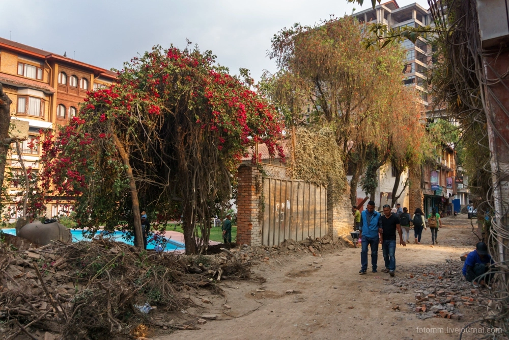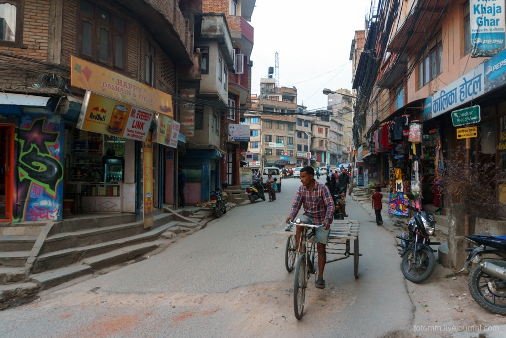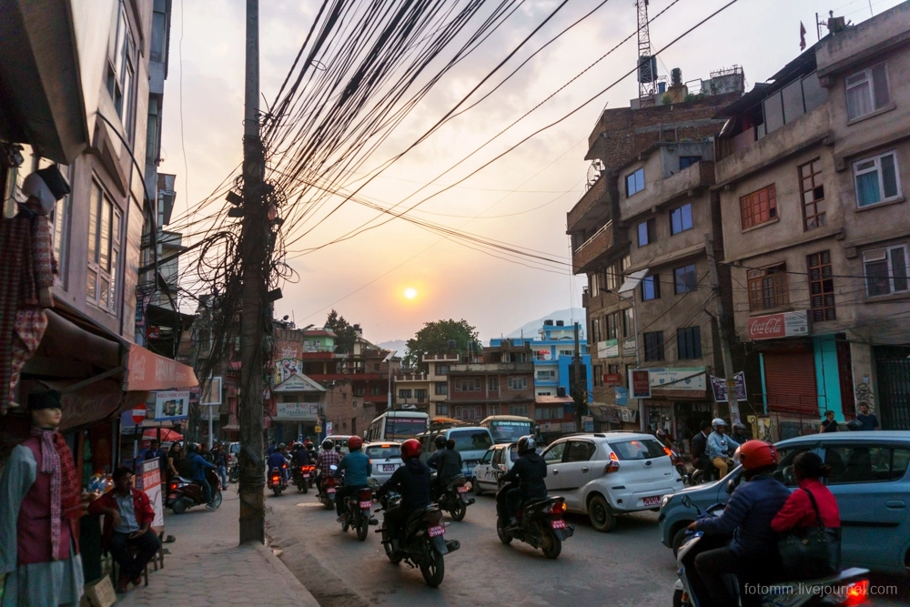 Для тех, кто до прилета в Непал, уже побывал в Индии, а я это сделал дважды, здешняя обстановка не покажется такой уж шокирующей. Тем не менее — жара, пыль и грязь, запахи благовоний и дерьма, теснота и суета, безумие и абсурд происходящего вокруг — вот это вот все- мне показались очень знакомыми, практически родными) Как будто вернулся в прошлое.